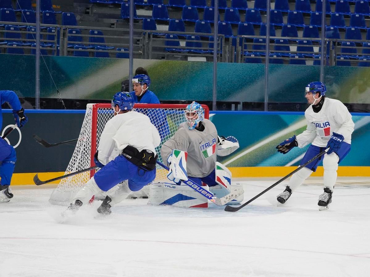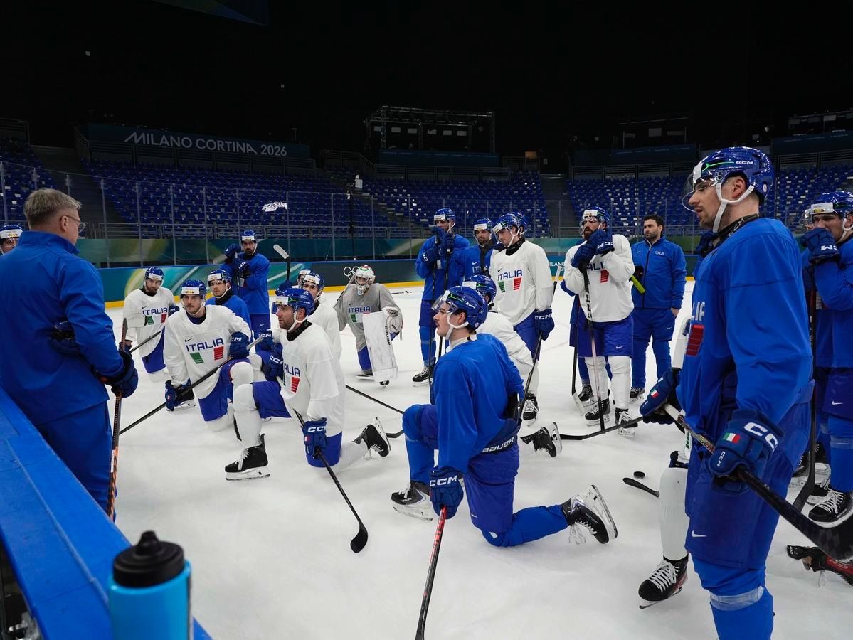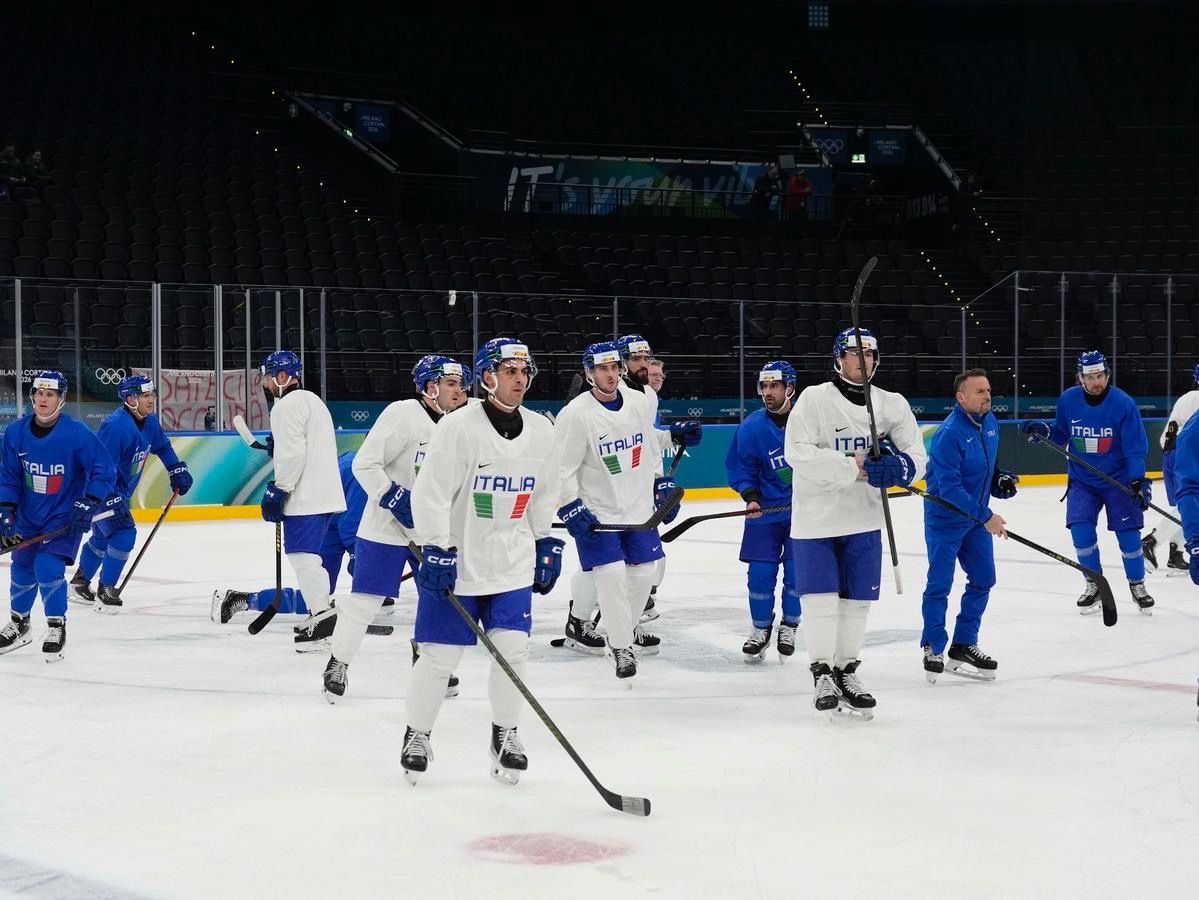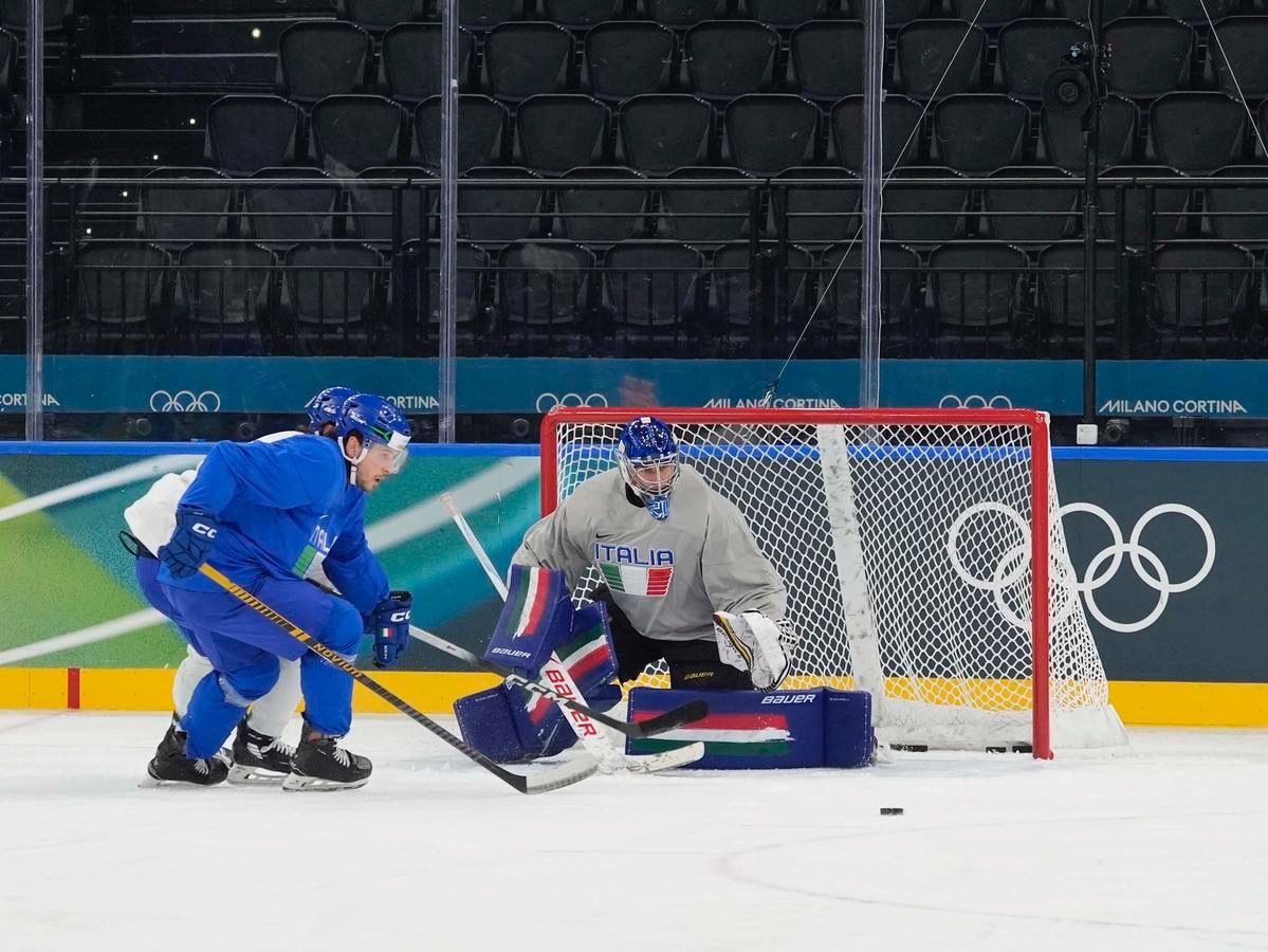 Milano: l'allenamento della Nazionale maschile di hockey su ghiaccio