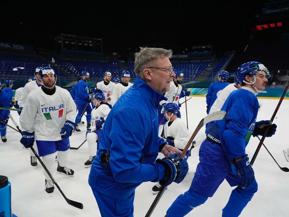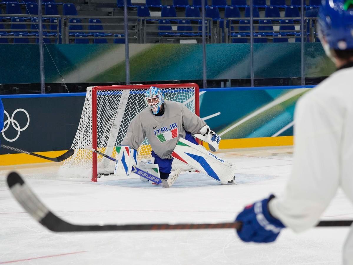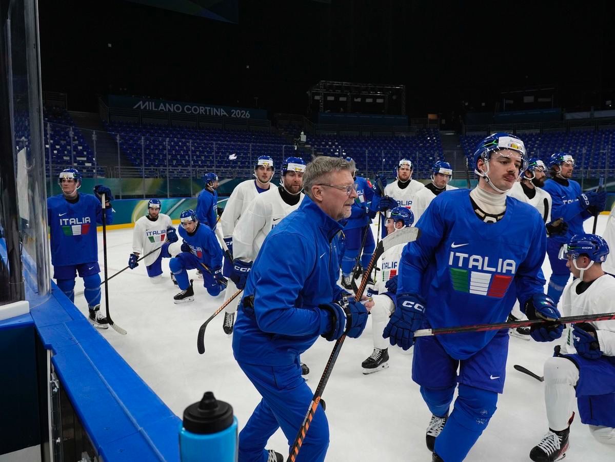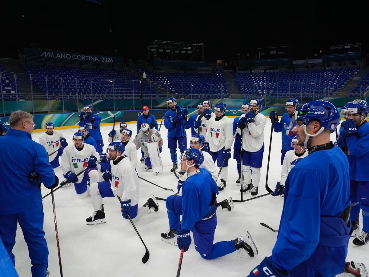 Milano: l'allenamento della Nazionale maschile di hockey su ghiaccio