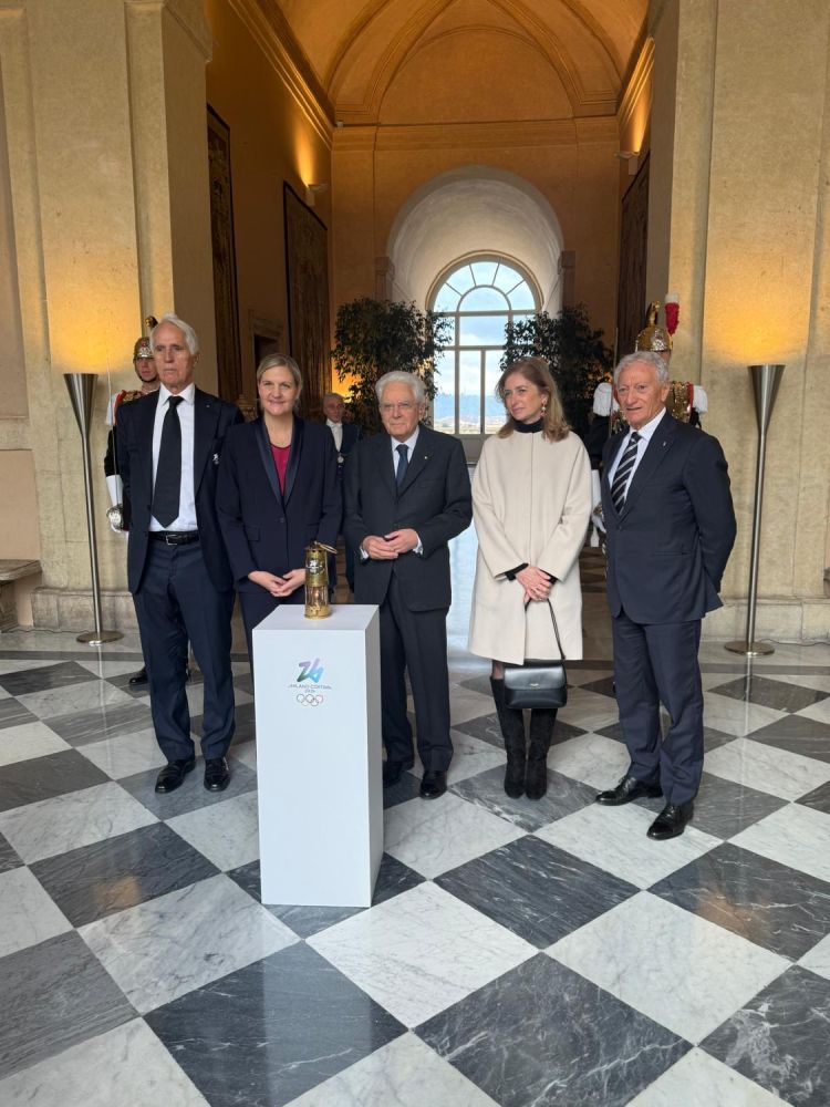 A Piazza del Quirinale, sotto la scia delle Frecce Tricolori, il Presidente della Repubblica Sergio Mattarella ha acceso il braciere del viaggio della fiamma olimpica di Milano Cortina 2026. Alla presenza di Giorgia Meloni, Presidente del Consiglio dei Ministri, Ignazio La Russa, Presidente del Senato, Lorenzo Fontana, Presidente della Camera dei Deputati, Matteo Salvini, Ministro delle Infrastrutture e dei Trasporti, Andrea Abodi, Ministro per lo Sport e i Giovani, Kirsty Coventry, Presidente del CIO, Luciano Buonfiglio, Presidente del CONI, Marco Giunio De Sanctis, presidente del CIP, Giovanni Malagò, Presidente della Fondazione Milano Cortina 2026, Attilio Fontana, Presidente della Regione Lombardia, Giuseppe Sala, Sindaco di Milano, e Gianluca Lorenzi, Sindaco di Cortina, il Capo dello Stato ha firmato un momento chiave del percorso di avvicinamento ai Giochi Olimpici Invernali in programma dal 6 al 22 febbraio (foto Simone Ferraro/CONI).