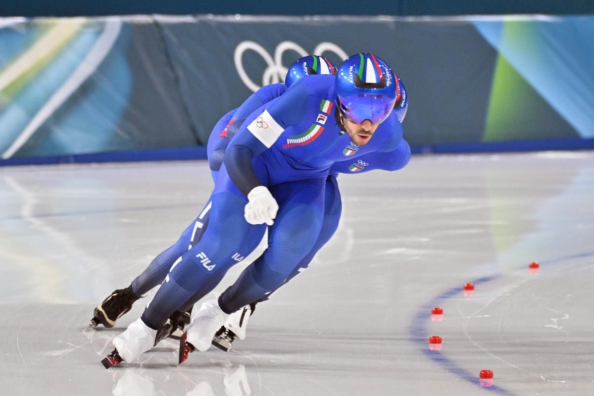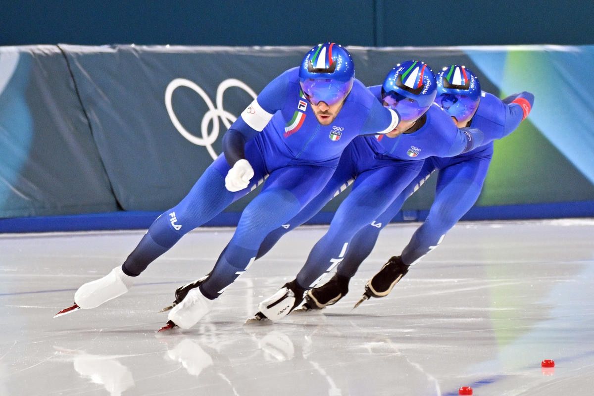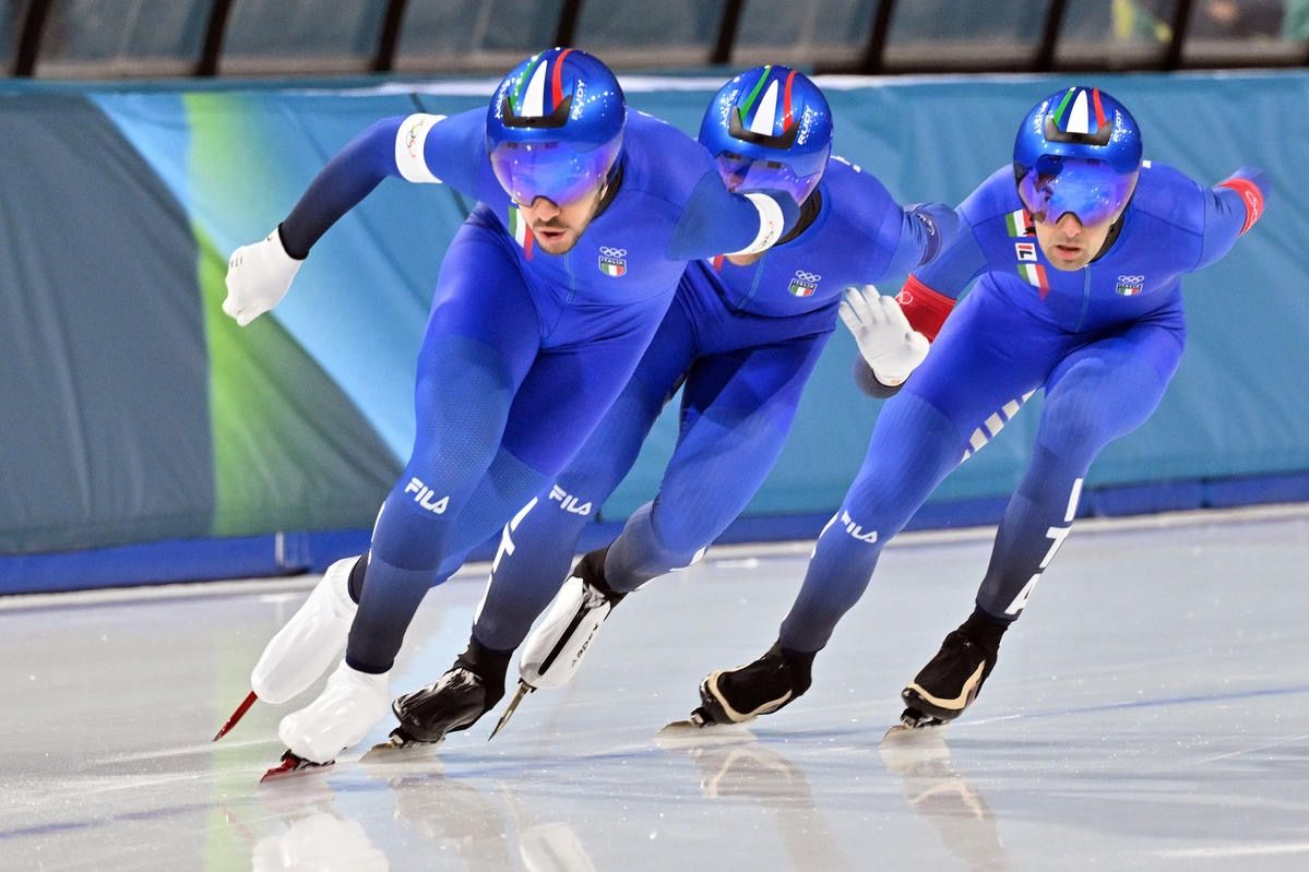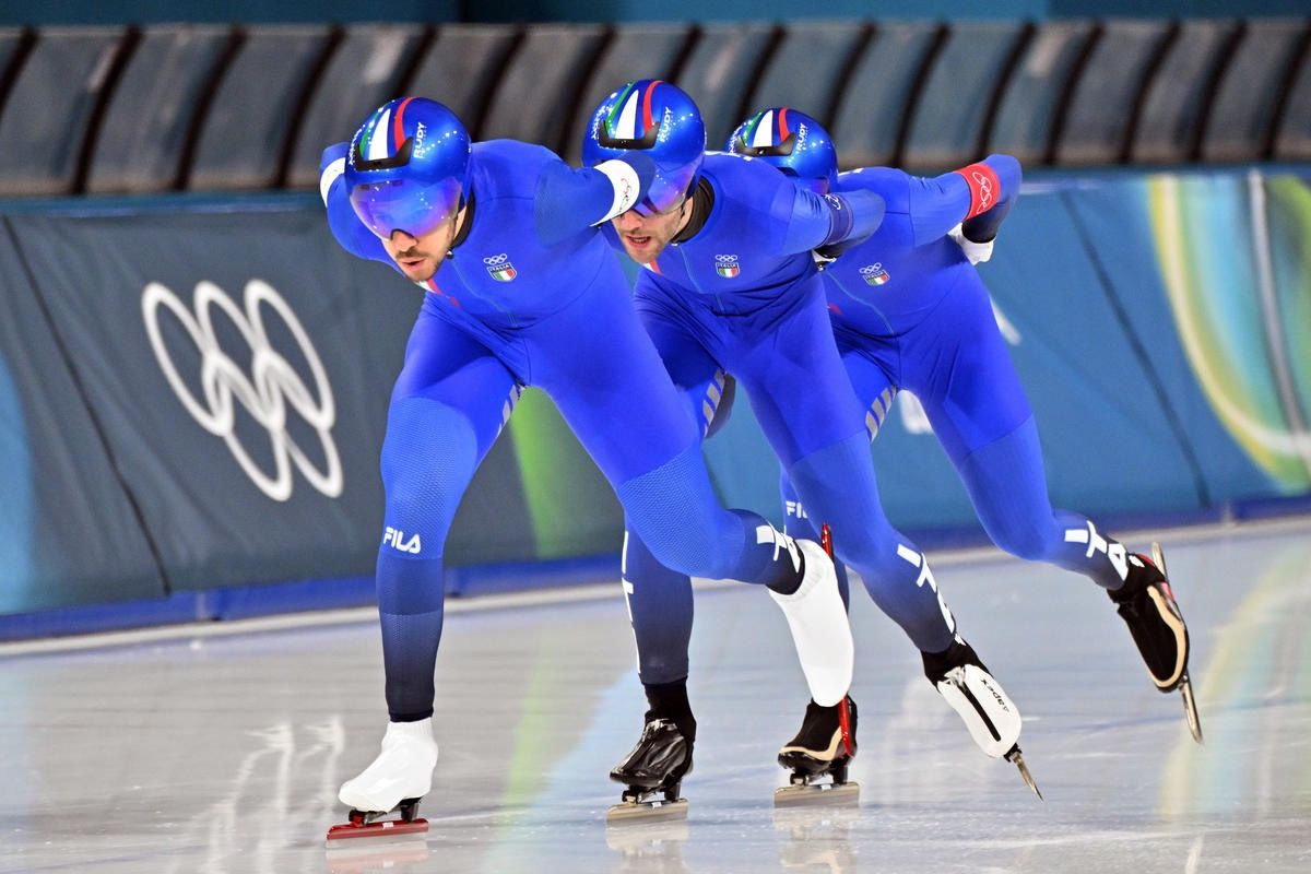 Gli azzurri, a due anni di distanza dall'altro storico titolo ottenuto ai Mondiali sul palcoscenico dell'Olympic Oval di Calgary (Canada), hanno debuttato in questa prova a squadre nel pomeriggio di domenica 15 febbraio, stampando il miglior tempo (3’38”40) nelle batterie dei quarti ed aggiudicandosi un posto all'interno della prima semifinale. Qui i ragazzi del direttore tecnico Maurizio Marchetto sono riusciti ad avere la meglio nei confronti dei Paesi Bassi (3’38”88 vs 3’40”67), che hanno tagliato la linea del traguardo con un ritardo di +1”79. La finale per l’oro, quindi, ha proposto la super sfida contro i rivali per eccellenza dell'ultimo biennio ovvero gli Stati Uniti di Ethan Cepuran, Casey Dawson e Emery Lehman, avanzati in scioltezza all’ultimo atto a discapito della Cina (3’44”29 vs 3’52”22).